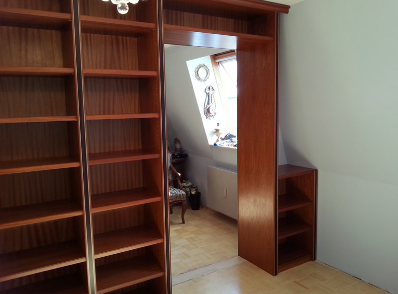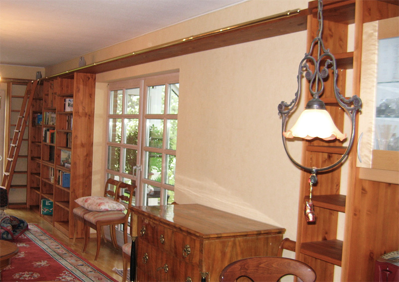 Hier ein paar ausgewählte Referenzobjekte von meinen Möbel-Sonderanfertigungen und Möbel-Änderungsarbeiten darunter: ein Sideboard, ein Regalschrank, eine Hirnholztischplatte, hängend montierte Nachttische, eine Leichtbau-Pendeltür, eine eingepasste Ecksitzbank, ein Spezial-Eckschrank, ein Schiebeschrank, ein umlaufendes Regal, mit Reling, die Restauration eines Dekorelements